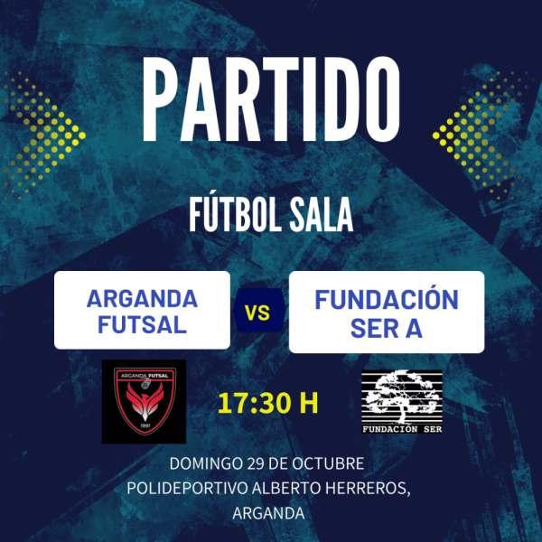 Este domingo a las 17:30h nuestro equipo de fútbol Sala Fundación SER A se enfrenta al Arganda Futsal. El partido tendrá lugar en el Polideportivo Alberto Herreros en Arganda del Rey.