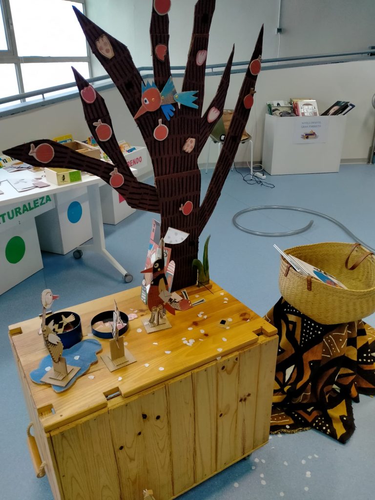 En el C.O. Estar-5 la actividad de este trimestre, en la Biblioteca Miguel Hernández, ha sido sobre el árbol en las estaciones del año y los pájaros. Hemos pasado por las 4 estaciones y hemos colocado nieve, flores, frutas…, hemos hecho sonidos de pájaros y hemos pedido deseos con unas plumas por un tubo larguísimo.