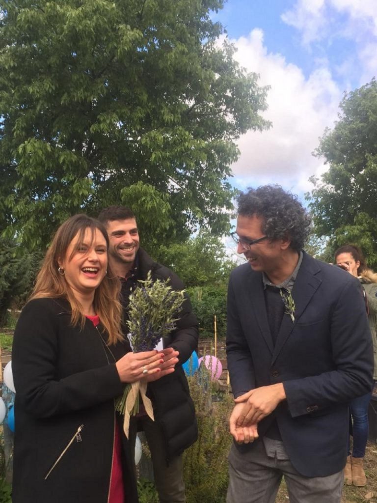 El jueves 25 de abril, los chicos y chicas de Estar-5 tuvimos celebración. Gonzalo y Alejandra hicieron una pre boda en el huerto y nos invitaron, Jorge fue el que les casó, Clara fue la madrina y Rafa el padrino. Patricia era la que llevaba los anillos. Les tiramos al final el arroz luego, le dieron unos regalos, también nos hicimos fotos con ellos, después nos fuimos a tomar algo y por último fue la tarta de chuchería que fue cosa nuestra y les hizo mucha ilusión.