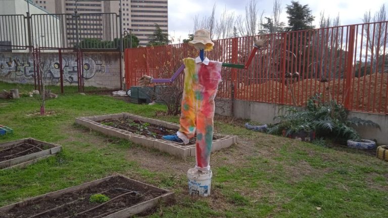 En invierno las actividades del huerto del C.O. Estar-los Yébenes no paran a pesar del frío, la lluvia e incluso la nieve. Cuando termina el otoño además de plantar las plantas hortícolas de invierno hemos estado preparando una zona de rocalla donde hemos puesto, entre otras plantas, diversas suculentas. También hemos estado renovando nuestro espantapájaros, y ya que la época del año es bastante gris hemos decidido ponerle color con los ropajes del mismo. En todo esto la ayuda de las personas que componen el equipo de la UDC de Latina ha sido muy valiosa.