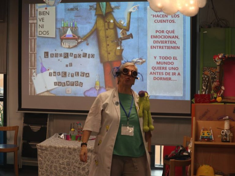 El otro día fuimos todos los de Pintor Rosales a La Casa Encendida a ver un actuación donde había una señora que nos contaba un cuento y nos hacia señalar cosas en la pizarra. Nos enseñó sus experimentos y nos regaló una chapa a todos. Ella tenía un gorro de experimentos he iba vestida con una bata y llevaba un muñeco muy gracioso. Fue genial!!
