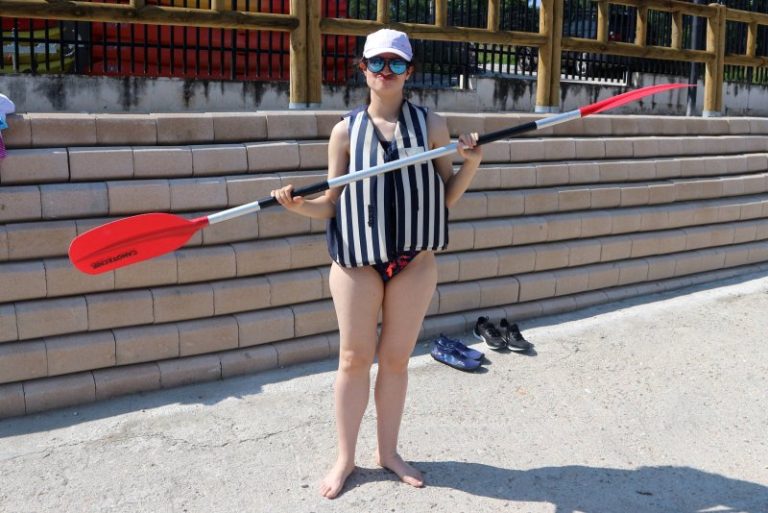 El pasado 22 de junio un grupo de personas usuarias del C.O. Pintor Rosales fuimos a una actividad de piragüismo en el lago del Parque Pradolongo (Usera) y nos gustó muchísimo. Los monitores nos enseñaron al inicio a usar las palas que íbamos a usar para remar. Una vez en el agua hicimos juegos con pelotas y carreras. Nos gustaría volver hacer una actividad así. Participamos 9 personas junto con Sandra y Mario. Para llegar hasta el lago fuimos en metro hasta el hospital 12 de Octubre. Durante toda la actividad llevamos un chaleco salvavidas por si nos caíamos al agua…que no pasó. Esta actividad ha sido organizada por el Programa de Jóvenes por la Inclusión de la Dirección General de Juventud de la Comunidad de Madrid.